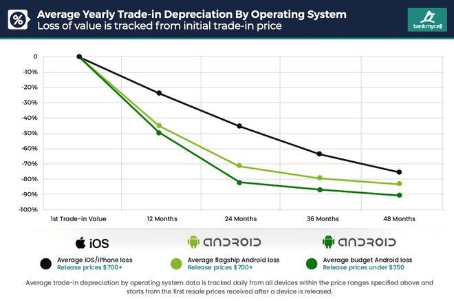 Một số nguồn tin khác cũng đưa ra các thông tin nghiêng về phía Apple. Back Market, một chợ điện tử bán hàng refurbished tại châu Âu và Mỹ cho biết sản phẩm của Apple chiếm tới 84% doanh số của công ty này. Gazelle, công ty bán hàng refurbished độc lập nổi tiếng nhất tại Mỹ, cho biết phần lớn doanh số đến từ iPhone thay vì Android - ngay cả doanh số iPhone "S" cũng có thể lên tới 100,000 chiếc mỗi năm. Các thống kê cũng cho thấy mức độ giữ giá của iPhone cao hơn rất nhiều so với smartphone Android, cho thấy nhóm người dùng mua đồ cũ vẫn yêu chuộng smartphone mác Táo hơn hẳn các đối thủ cạnh tranh.