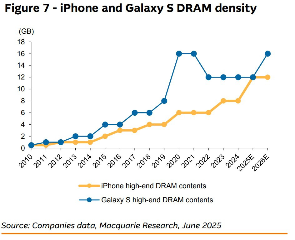 Khoảng cách này dự kiến sẽ giảm xuống còn 4GB vào đầu năm tới, với 16GB RAM trên dòng Galaxy S26 và 12GB RAM dự kiến trên tất cả các mẫu iPhone 17 vào tháng 9.