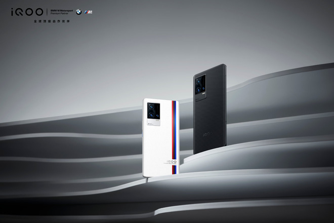 Thiết kế của iQOO 8 series lần này không có quá nhiều thay đổi so với dòng iQOO 7 trước đó. Máy có mặt lưng được hoàn thiện từ chất liệu giả carbon khá độc đáo. Có hai tuỳ chọn màu sắc là đen và trắng, trong đó tuỳ chọn màu trắng sẽ có thêm hoạ tiết của thương hiệu siêu xe BWM.