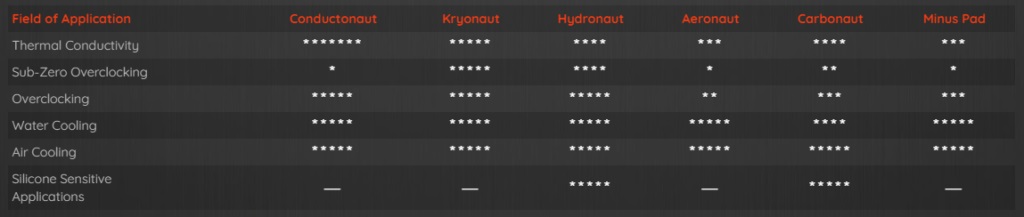 Đối với nhiều loại tản nhiệt thông thường thì lại không xảy ra tình trạng như vậy. Chúng vẫn có thể giữ được cái dạng nhão nhão kể cả khi xuống dưới độ âm, và những loại keo như thế này sẽ phù hợp cho việc ép xung bằng nitơ lỏng, heli lỏng… hơn nhiều so với liquid metal. Lý do liquid metal dẫn nhiệt đỉnh nhất nhưng không ai dùng để “ép xung đua top” là vì nó chỉ tốt ở điều kiện bình thường mà thôi.