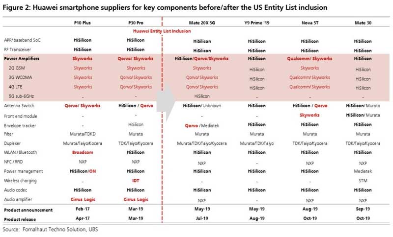 Một người phát ngôn của Huawei nói với Wall Street Journal rằng họ vẫn muốn tích hợp các thành phần linh kiện của Mỹ vào sản phẩm của mình nhưng nếu điều đó không được phép (từ chính phủ), thì họ không có lựa chọn nào khác là tìm một giải pháp thay thế. Tuy nhiên, điều này không có nghĩa Huawei đã có thể tự đứng vững mà không cần các công ty Mỹ, ngay khi bị cấm vận họ nói đã dự trữ đủ số linh kiện để dùng về sau này. Hay như trên chiếc Mate 30 Pro 5G vẫn có một vài con chip tới từ Qualcomm hay Texas Instruments.