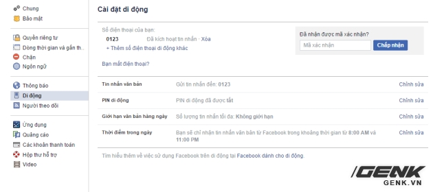 Bước 7: Số điện thoại đã được chấp nhận. Trong trường hợp muốn điều chỉnh các điều khoản, hãy chọn các đầu mục bên dưới bao gồm: Tin nhắn văn bản, PIN di động, Giới hạn văn bản hàng ngày, hay Thời điểm trong ngày.