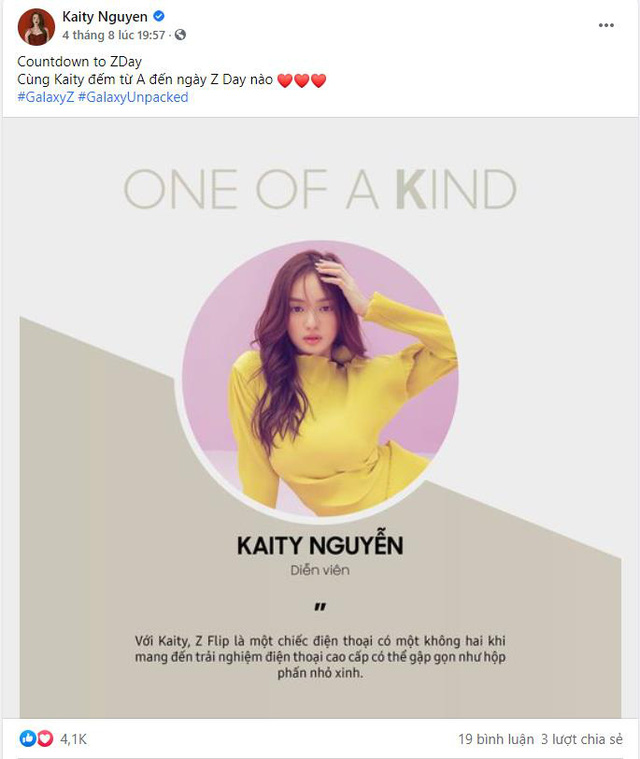 Vẻ ngoài duyên dáng dễ thương cùng trải nghiệm công nghệ đỉnh cao của Galaxy Z Flip đã chiếm trọn cảm tình của Kaity Nguyễn. Cô nàng đã không tiếc lời dành tặng cho thiết kế độc đáo sáng tạo và ví von Galaxy Z Flip giống như một chiếc "hộp phấn" để có thể mang theo bên mình mỗi ngày.