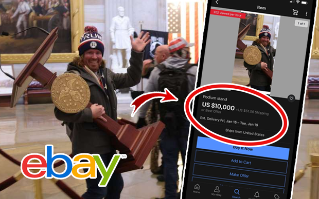 Ngày 6/1, Tổng thống Mỹ Donald Trump kêu gọi những người ủng hộ ông vào ngày quốc hội bỏ phiếu xác nhận kết quả bầu tổng thống của cử tri đoàn, hãy tới thủ đô Washington D.C. Ngày hôm sau, thế giới chứng kiến những hình ảnh bạo loạn lớn nhất lịch sử nước Mỹ, hàng ngàn người đã xông vào bên trong tòa nhà Quốc hội và đập phá. Đến cả cái bục phát biểu cũng bị cướp và rao bán trên eBay sau đó.