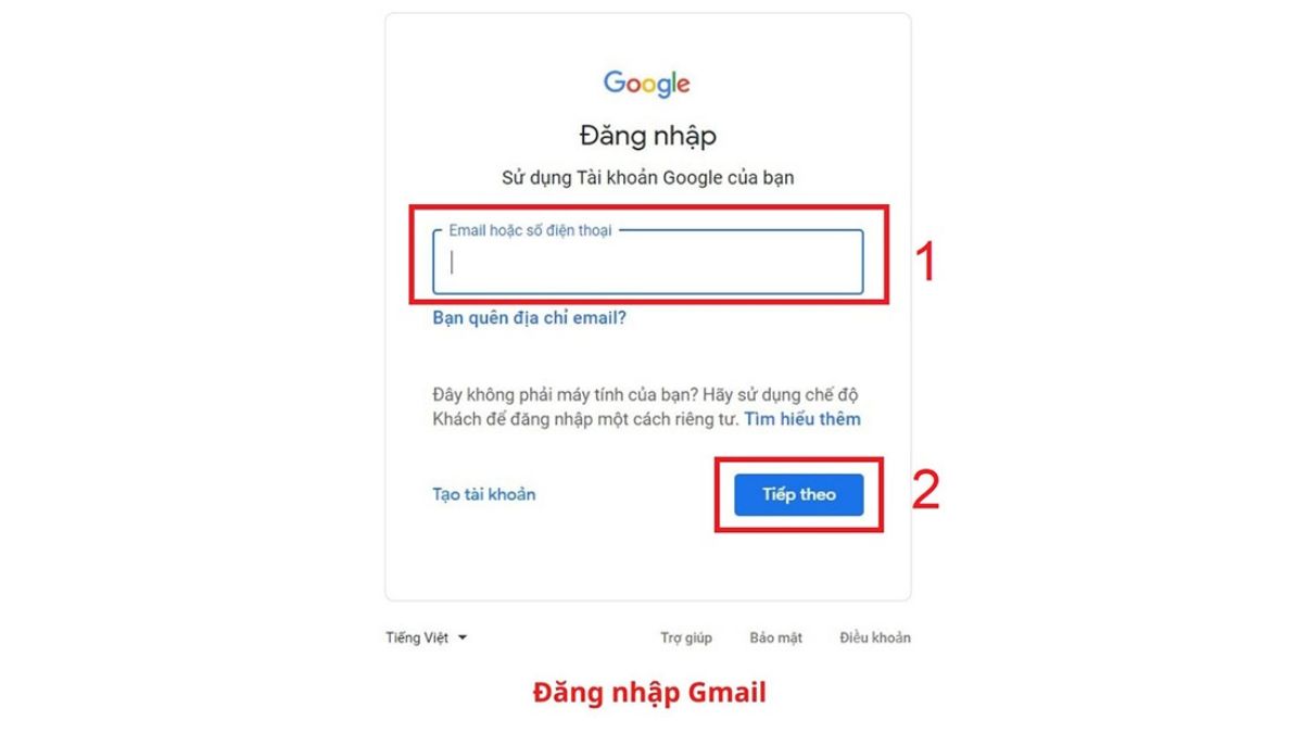 Bước 1: Bạn hãy truy cập vào đường liên kết: https://accounts.google.com/signin. Sau đó, đăng nhập vào tài khoản Gmail của bạn. Nhập địa chỉ Email của bạn vào ô Email và nhấn Tiếp theo.