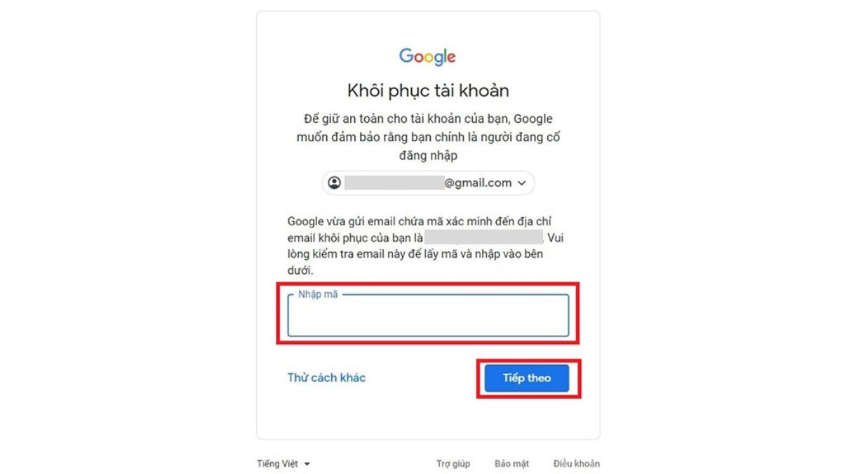 Bước 4: Kiểm tra email khôi phục để lấy mã xác minh. Sau đó, nhập mã vào trang đăng nhập và nhấn Tiếp theo để tiếp tục cách lấy lại mật khẩu Gmail khi bị quên SĐT.