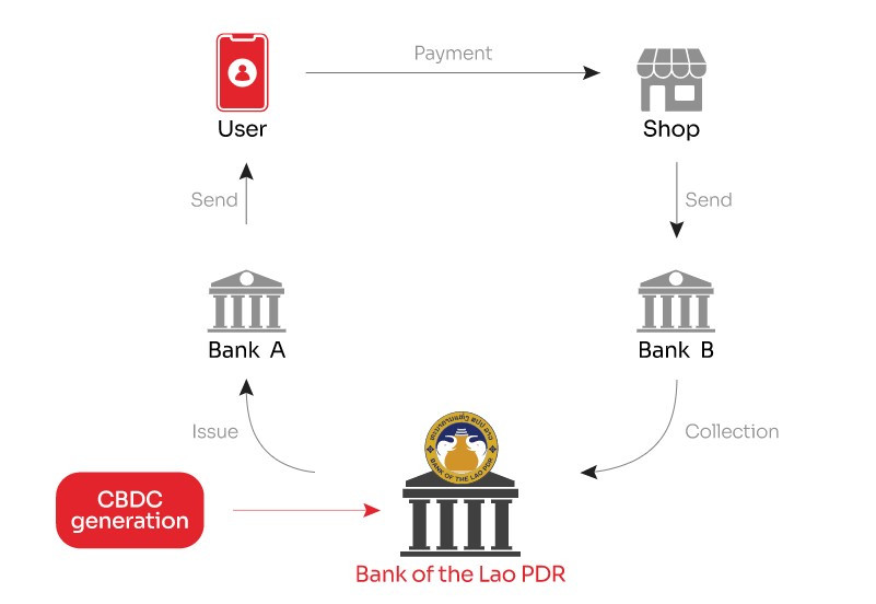 Về quy trình hoạt động, Ngân hàng trung ương Lào sẽ tạo ra CBDC rồi phát hành cho một ngân hàng thương mại. Sau đó, ngân hàng thương mại sẽ gửi CBDC tới các tài khoản cá nhân và cho phép họ dùng đồng tiền số đó thanh toán tại cửa hàng.