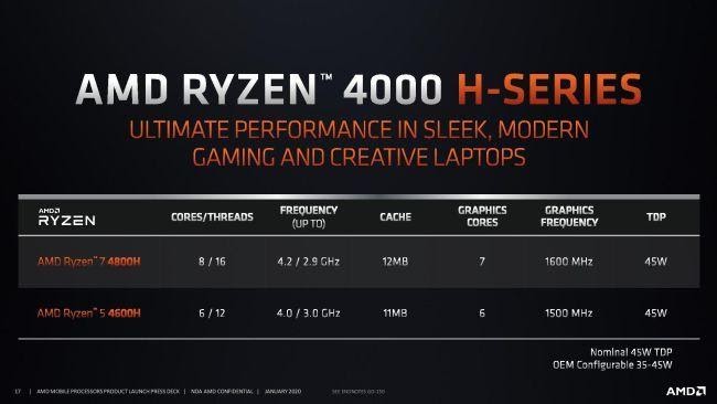 Ngược lại, AMD vẫn chưa chính thức công bố chip Ryzen 7 4800HS, nên trang web của AMD hay Amazon đều không có thông tin gì về nó. Theo tin hành lang thì con chip này sẽ tiết kiệm điện hơn 4800H với mức TDP là 35W.