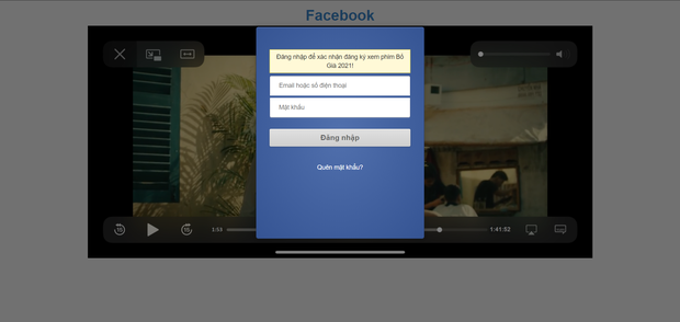 Khi người dùng bấm vào đường link được cho là bản Full HD của phim Bố Già nói trên, sẽ ngay lập tức được dẫn đến một trang web với thông báo bạn buộc phải đăng nhập tài khoản Facebook để xem được phim này. Đến đây thì quen rồi phải không? Có thể bạn đang đối mặt với một cuộc "tấn công giả mạo" đấy!