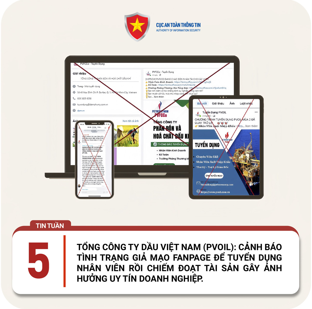 Mới đây, một số đối tượng đã giả mạo danh nghĩa của Tổng công ty Dầu Việt Nam (PVOIL) để đăng thông tin tuyển dụng trên các fanpage giả mạo nhằm lừa đảo, chiếm đoạt tài sản của người ứng tuyển, làm ảnh hưởng đến uy tín của doanh nghiệp này.