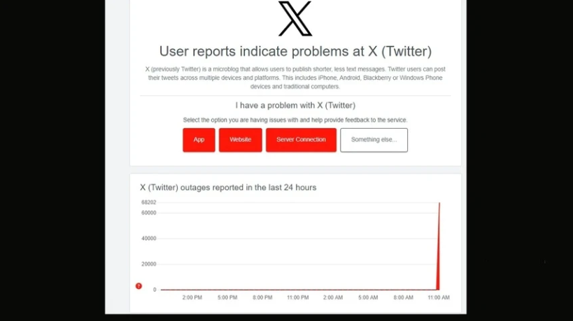 Cách đây 5 tháng, Downdetector báo cáo tổng số lần X bị sập hệ thống là hơn 13.000 lần ở Mỹ và Anh. Khi truy cập nền tảng, người dùng sẽ nhận thông báo: “Xin lỗi, bạn bị giới hạn tốc độ. Vui lòng đợi một lát rồi thử lại.”