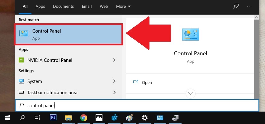 Bước 1: Đầu tiên bạn bấm vào Windows và gõ vào đó Control Panel rồi Enter.
