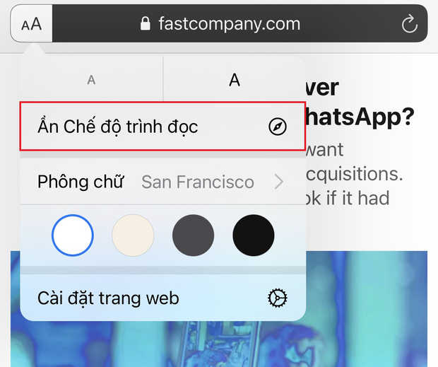 Trang web giờ đây không chỉ load nhanh hơn, gọn gàng hơn mà còn giúp bạn thoát khỏi sự khó chịu của quảng cáo nữa. Tất nhiên, chế độ này chỉ tự động kích hoạt với những trang web có sẵn chế độ trình đọc. Để thoát chế độ này cũng rất đơn giản, bạn chỉ cần chọn biểu tượng Aa trên thanh địa chỉ, chọn Ẩn chế độ trình đọc là xong.