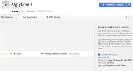 Cài đặt Uglyemail giúp bảo vệ hòm thư Gmail của bạn. |