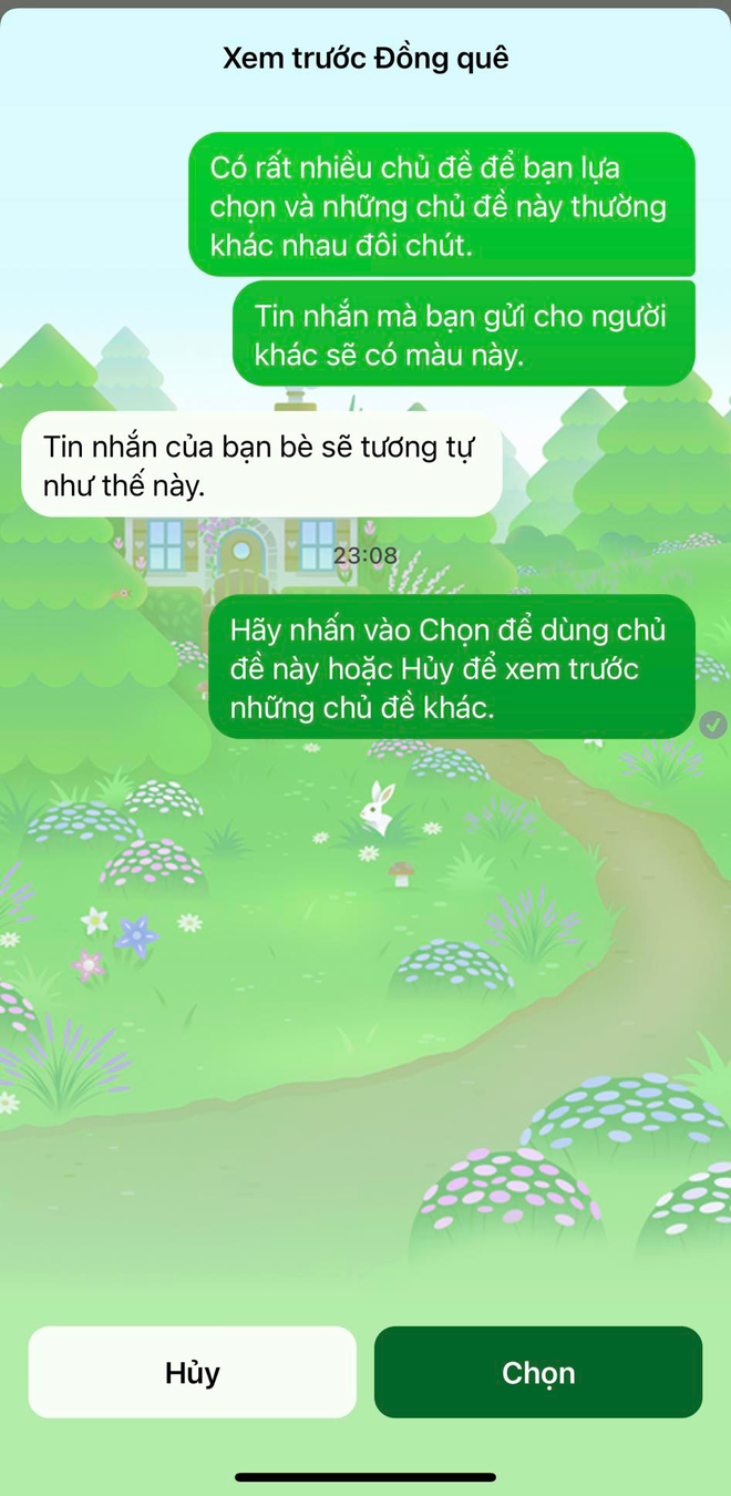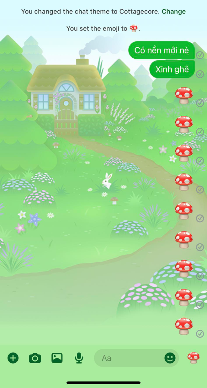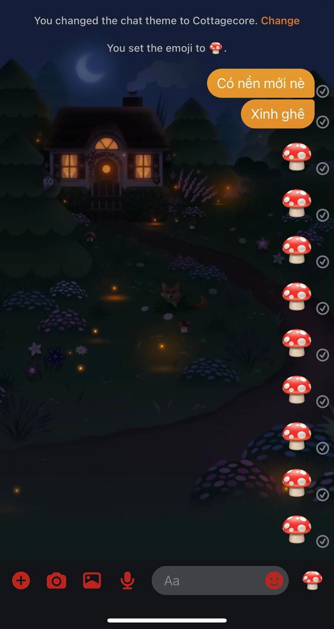 Mới đây nhất, cộng đồng mạng lại "dậy sóng" khi Messenger tung ra chủ đề "Đồng quê" mới. Nền cuộc trò chuyện trên Messenger của bạn sẽ có hình ảnh ngôi nhà cùng phong cảnh siêu xinh, ở chế độ sáng nền sẽ có màu xanh còn nếu như để nền tối sẽ có màu tím.