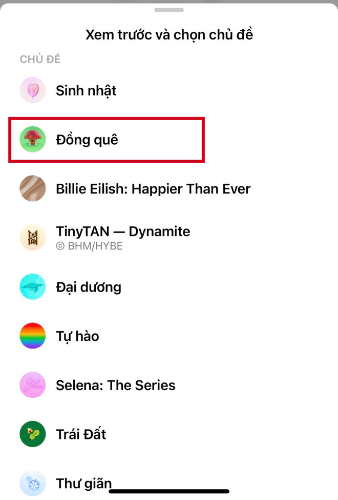 Hiện tại, nhiều Messenger chưa được cập nhật theme mới này, để kiểm tra xem tài khoản bạn đã có chưa hãy vào Messenger => chọn Cài đặt => tiếp đến chọn Chủ đề và chọn Đồng quê.