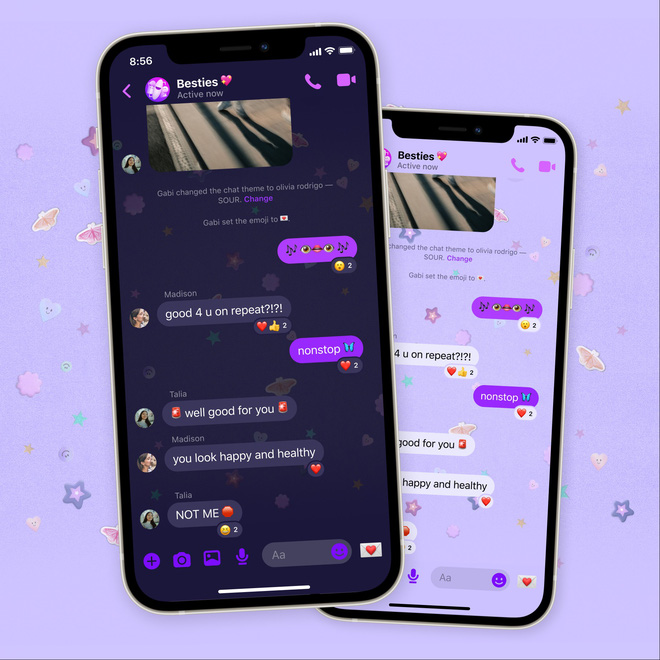 Thời gian gần đây, để chiều lòng người dùng và bắt trend cùng các idol, Messenger đã tung ra một loạt các theme mới siêu xinh. Hết từ BTS, sang Sour của Olivia Rordrigo và Happier Than Ever của Billie Eilish khiến netizen đứng ngồi không yên vì toàn các chủ đề "hot hit", nền Messenger cũng trở nên xinh hơn rất nhiều.