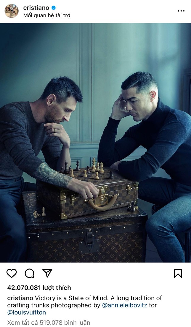 Con số này phá sâu kỷ lục bài đăng được yêu thích nhất của một vận động viên do Cristiano Ronaldo thiết lập ngay trước World Cup 2022. Đáng chú ý, kỷ lục của Ronaldo cũng có sự góp mặt của Messi. Bức ảnh hai siêu sao này đánh cờ đăng tải trên tài khoản của CR7 đạt 42 triệu lượt yêu thích.