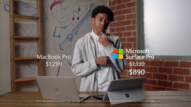 Và cuối cùng là giá bán. Surface Pro 7 có giá 1.130 USD, và nay giảm còn 890 USD. Trong khi đó, MacBook Pro có giá 1299 USD.