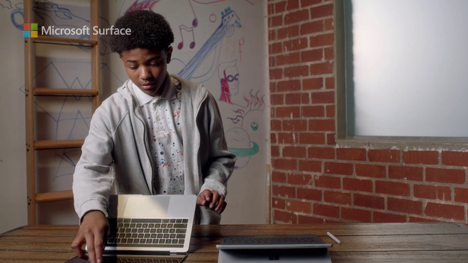 Hỗ trợ cảm ứng và bút: Surface Pro 7 sở hữu màn hình cảm ứng và hỗ trợ bút, trong khi MacBook Pro chỉ có một thanh Touch Bar. "Tại sao họ (Apple) lại không tích hợp luôn một màn hình cảm ứng?", nhân vật trong video nói.
