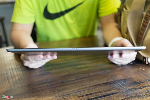 Có màn hình lên đến 12,9 inch, iPad Pro trông rất lớn khi cầm trên tay. Tuy nhiên, Apple vẫn duy trì độ mỏng và dày viền cần thiết cho sản phẩm này. So với kích thước này, sản phẩm không quá nặng. |
