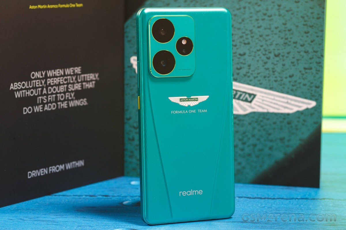 Realme GT 7 Dream Edition có màu xanh Aston Martin Racing đặc trưng, được bán kèm hộp đựng cùng màu chứa bộ sạc 120W, cáp USB, que chọc SIM và một cuốn sách nhỏ có thông tin về lịch sử đua xe của Aston Martin cũng như thiết kế của GT7.