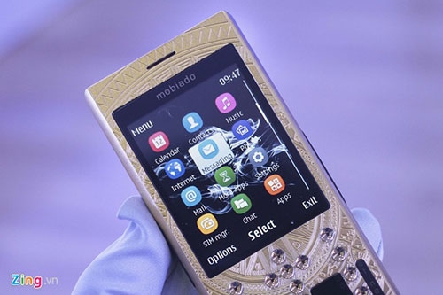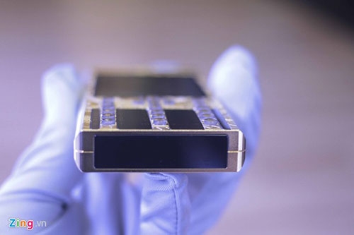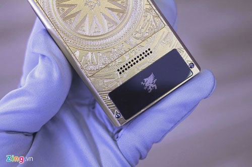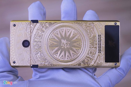 | Vỏ máy được làm bằng kim loại mạ vàng với các chi tiết hoa văn được in chìm rất tinh tế. |