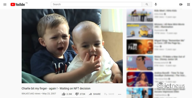 Gia đình sở hữu clip nổi tiếng “Charlie Bit My Finger” đã thực hiện bán đấu giá clip này dưới định dạng NFT (non-fungible token) với giá cuối cùng được chốt là 760.000 USD. NFT là định dạng tác phẩm số không thể bị chia nhỏ nổi lên trong cơn sốt tiền ảo vào hồi đầu năm nay.
