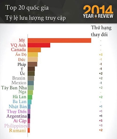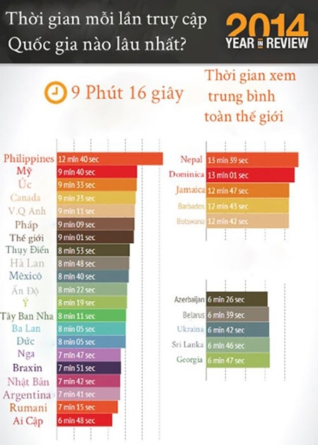 Mỹ thống trị danh sách 20 quốc gia có lưu lượng truy cập nhiều nhất nhưng Trung Quốc mới là quốc gia có thời gian trung bình xem một bộ phim nhiều nhất.