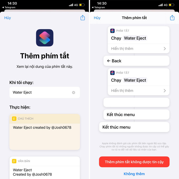 Và đây là cách lấy nước ra, shortcut này có tên là Water Eject. Nó sẽ giúp bạn bảo vệ tốt chiếc iPhone hơn.