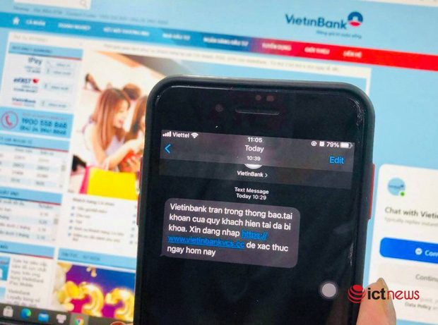 Các tin nhắn giả mạo ngân hàng đang dồn dập tấn công người dùng. Chỉ vừa mới đây, một khách hàng của VietinBank cho biết bị mất tiền trong tài khoản vì click vào đường link. Người này nhận được tin nhắn từ hệ thống VietinBank thông báo tài khoản ngân hàng của mình bị khóa. Do tin tưởng đây là tin nhắn từ hệ thống ngân hàng nên người dùng truy cập vào link gửi kèm để xác thực tài khoản. Sau khi làm theo hướng dẫn, tài khoản ngân hàng bị trừ ngay 7,5 triệu đồng.