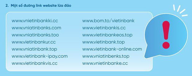 Ngay sau đó, VietinBank đã phát đi cảnh báo tới người dùng về các hình thức lừa đảo nhằm đánh cắp tài khoản, mật khẩu, thông tin cá nhân… từ đó chiếm đoạt tiền trong tài khoản của khách hàng.