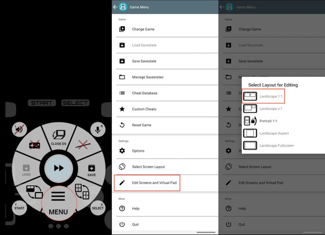 Trong ứng dụng DrasStic, bạn cần mở bộ giao diện đã được tải về, chọn màu máy Nintendo DS mà bạn muốn - ta có màu đen, xanh dương, xanh lá, trắng và đỏ đun tại Menu > Set background image. Trước khi có thể đến với việc chơi game, bạn cần điều chỉnh lại vị trí của màn hình máy tại mục Resize screen (kéo màn hình ảo vào màn hình của giao diện nền phía sau) và vị trí của những nút bấm tại mục Edit Controller Layout (kéo những nút bấm điều khiển về đúng với vị trí của nó), sau đó lưu tại bằng nút Save as global layout.