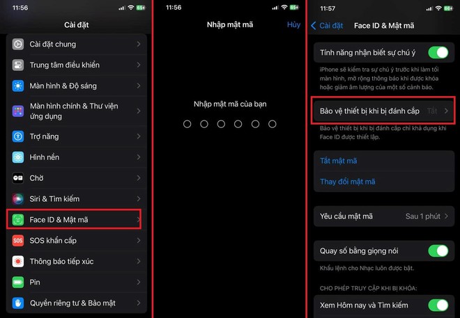 Lưu ý: Nếu bạn không nhìn thấy Bảo vệ thiết bị khi bị đánh cắp thì có thể bạn cần thiết lập Face ID hoặc Touch ID trước tiên.
