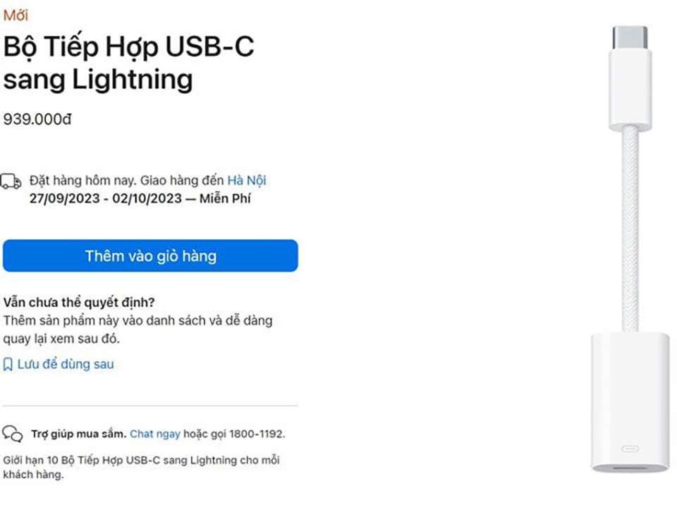 Tuy nhiên, vẫn có cách để người dùng iPhone quay lại với cổng sạc Lightning. Theo niêm yết trên Apple Store Online Việt Nam, phụ kiện chuyển từ cổng USB-C sang Lightning được niêm yết với giá 939,000 đồng, miễn phí vận chuyển. Nó đi kèm với cáp bện chống rối và gia tăng độ bền.