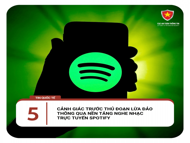 Theo Cục An toàn thông tin, thời gian qua, nhiều người dùng Spotify cho biết họ nhìn thấy nhiều danh sách nhạc, podcast được tạo lập với tiêu đề quảng cáo về các trang web lạ, kêu gọi truy cập nhằm tải về các phần mềm bị bẻ khóa miễn phí.