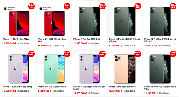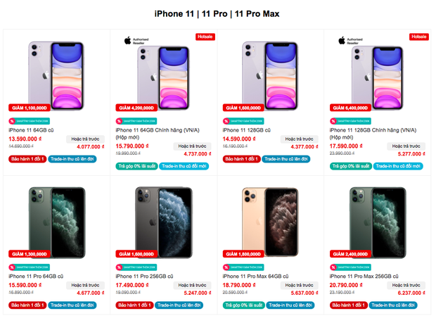 - iPhone 11 cũ có giá từ 13.590.000 đồng và iPhone 11 mới giá từ 15.790.000 đồng;