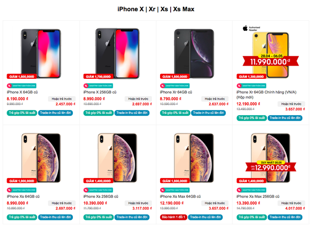- Xs Max cũ đang có mức giá tốt, chỉ từ 12.190.000 đồng;
