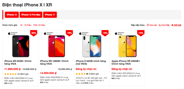 - iPhone XR đang có giá từ 11.990.000 đồng;
