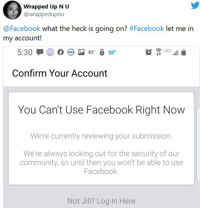 Chia sẻ trên mạng xã hội Twitter, nhiều người dùng tại Mỹ cho biết họ bất ngờ nhận được thông báo bị khóa tài khoản Facebook và không được đăng nội dung mới lên Facebook trong nhiều ngày, mặc dù trước đó họ không hề đăng tải thông tin hay hình ảnh gì vi phạm chính sách của Facebook.