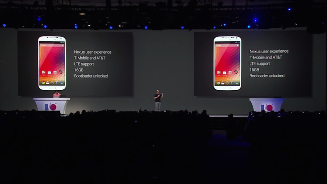 Chương trình này đã có một khởi đầu tuyệt vời tại sự kiện Google I/O 2013, nơi một phiên bản Google Play Edition của Samsung Galaxy S4 (phiên bản Snapdragon 600) đã được giới thiệu. Không có TouchWiz, chỉ có Android 4.2.2 Jelly Bean. Tại Mỹ, phiên bản này chỉ bán thông qua cửa hàng Google Play và được bán với giá 650 USD, cao hơn mức giá 580 USD của phiên bản thông thường.