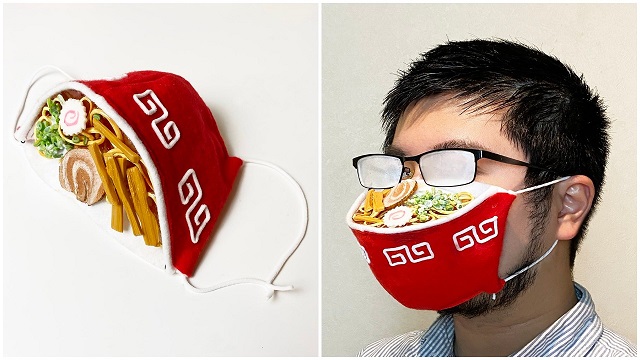 Nếu bạn là một tín đồ ẩm thực, chắc hẳn sẽ rất yêu thích chiếc khẩu trang trông “ngon miệng” với họa tiết một bát mỳ Ramen. Đó là ý tưởng của nghệ sĩ Takahiro Shibata, Nhật Bản nhằm giúp việc đeo khẩu trang không còn nhàm chán và đơn điệu.