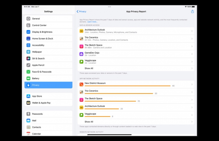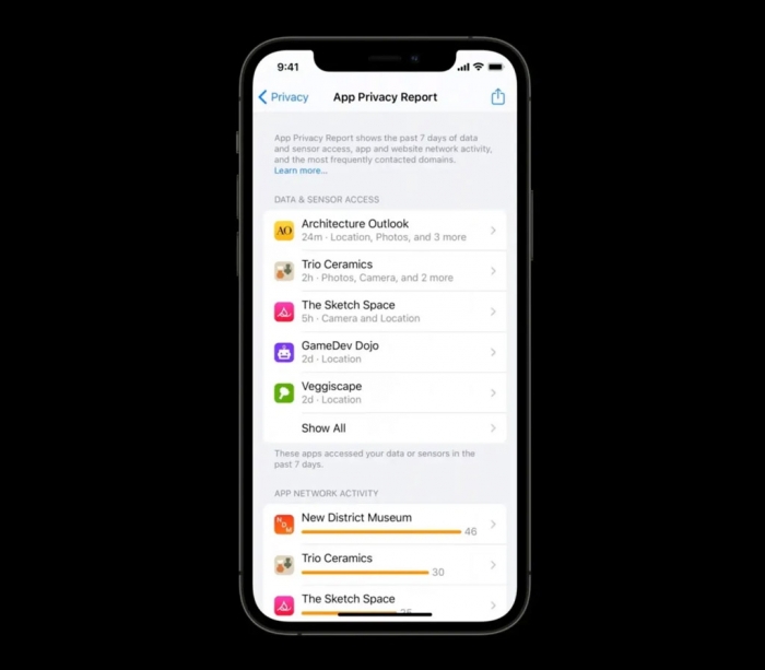 Apple giải thích như sau: "iOS 15 và iPadOS 15 đã giới thiệu tính năng Ghi hoạt động ứng dụng trong cài đặt quyền riêng tư, cho phép người dùng lưu bản tóm tắt về cảm biến, dữ liệu và truy cập internet của các ứng dụng trên thiết bị của mình. Với iOS 15.2 và iPadOS 15.2 Beta, hoạt động này được thể hiện rõ ràng hơn khi xem trong Cài đặt - Báo cào quyền riêng tư của ứng dụng. Đây là bổ sung tuyệt vời để người dùng xem lại dữ liệu và việc sử dụng internet của ứng dụng trên thiết bị.