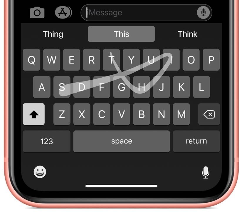 QuickPath (trượt để nhập) trên bàn phím IOS 13 giúp bạn gõ nhanh một nội dung bất kỳ bằng cách “Trượt” nhanh các ký tự trên bàn phím. Ví dụ muốn gõ nhanh chữ “Apple” ”, bạn dùng ngón tay lướt nhanh qua các chữ a,p,p,l,e.