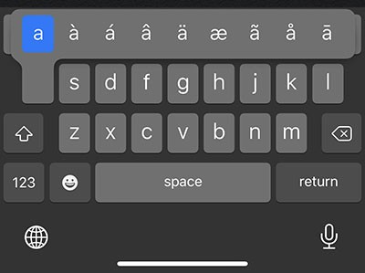 Nếu gõ các ngôn ngữ thường có chứa dấu trên đầu các ký tự, bạn chỉ cần chạm giữ vào ký tự ấy để xem danh sách các ký tự khi có thêm dấu, rồi chọn đúng ký tự cần dùng.