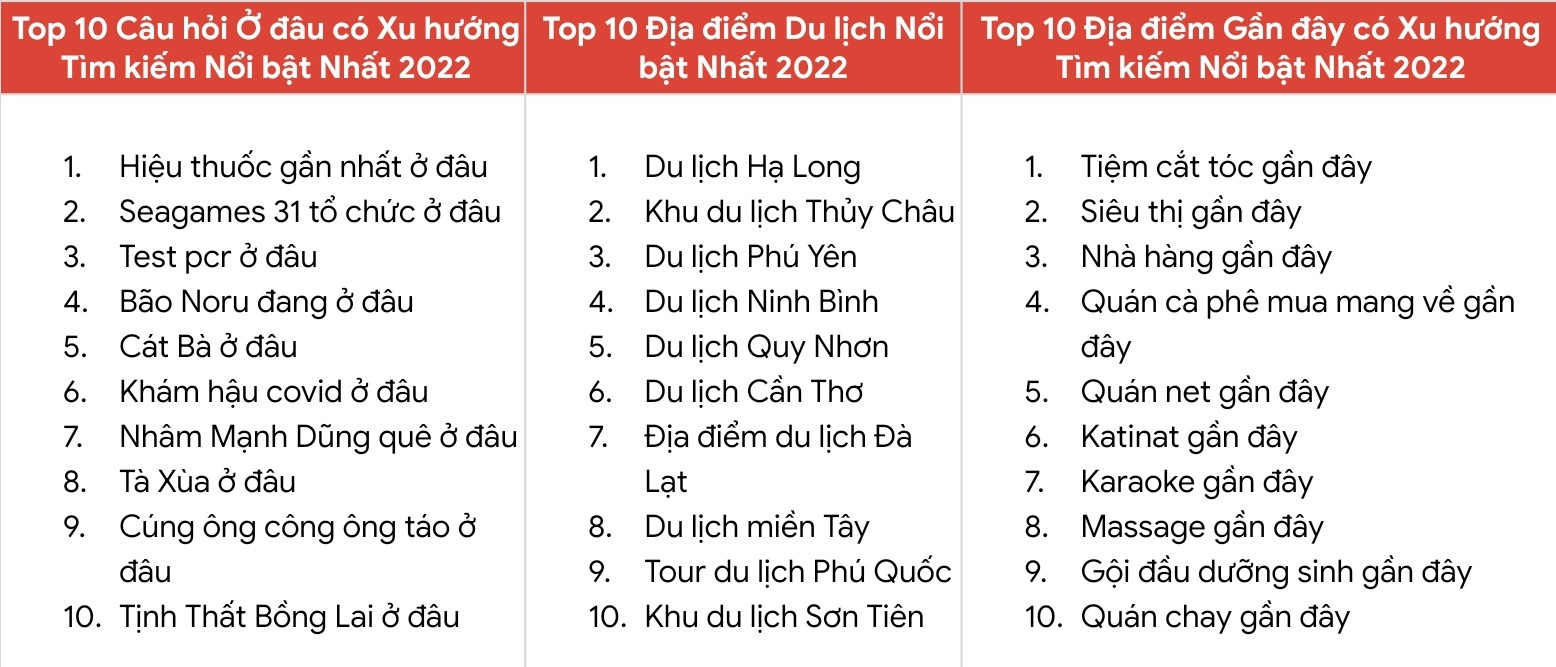 Theo Google, danh sách năm nay phản ánh một sự chuyển biến đáng kể khi không còn sự chiếm lĩnh của những từ khoá liên quan đến dịch bệnh Covid-19 như ở hai năm trước.