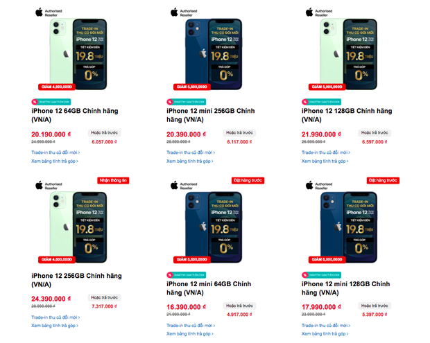 Sau 2 tháng, giá của các mẫu iPhone 12 mini và iPhone 12 đã giảm ít nhất từ 1 - 2 triệu đồng cho các mẫu tuỳ dung lượng.