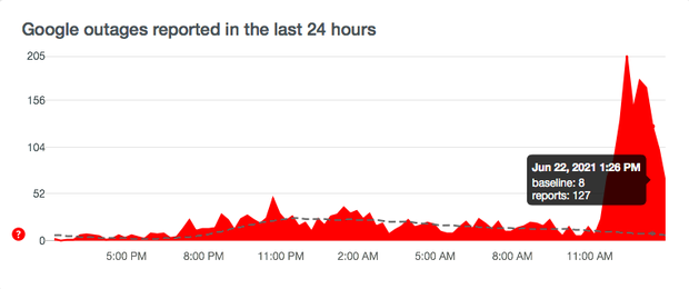 Theo báo cáo từ trang Downdetector thì hiện tại ứng dụng Google đang lỗi diện rộng, trên toàn cầu và số lượng người báo lỗi nhanh chóng tăng vọt. Tình trạng lỗi xuất hiện đỉnh điểm vào lúc 13h26 trưa, tình trạng trên các dòng máy hiện tượng bị lỗi Google bắt buộc đóng dừng lại.
