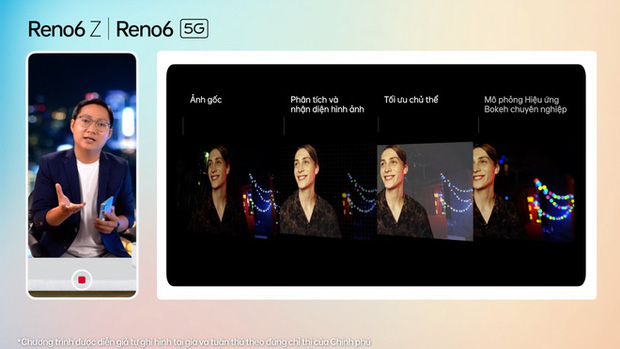Bên cạnh các tính năng hình ảnh đã có trên Reno6 Z 5G, Reno6 5Gcòn được trang bị thêm khả năng quay video chân dung bokeh, giúp cho những thước phim nhân vật thêm lung linh thần thái. Cùng với đó, chiếc máy này còn sở hữu các tính năng hỗ trợ video thú vị như làm đẹp AI, khóa nét chủ thể, video chuyên nghiệp cho phép chỉnh các thông số hoàn toàn bằng tay.