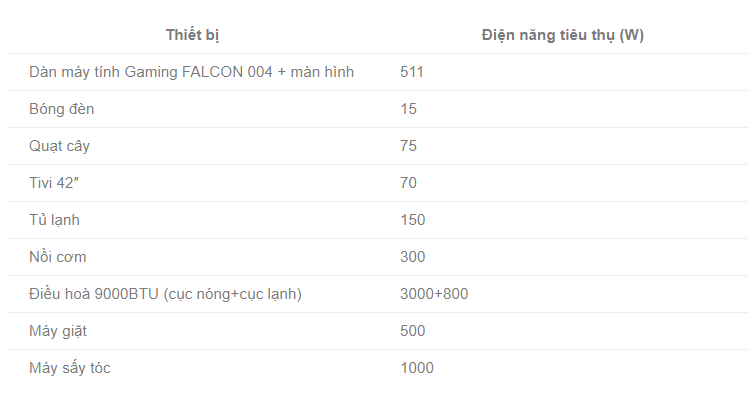 Giả sử bạn làm gì đó khiến CPU và GPU full load và máy tính tiêu thụ đến 476W, cộng thêm màn hình tiêu thụ tầm 35W điện, tổng là 511W thì hãy cùng tìm hiểu xem mức tiêu thụ điện này so với các thiết bị điện khác trong nhà ra sao nhé: